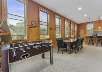 Gather with your friends and/or family in front of the fireplace, aroiund the table, or at the Foosball table.