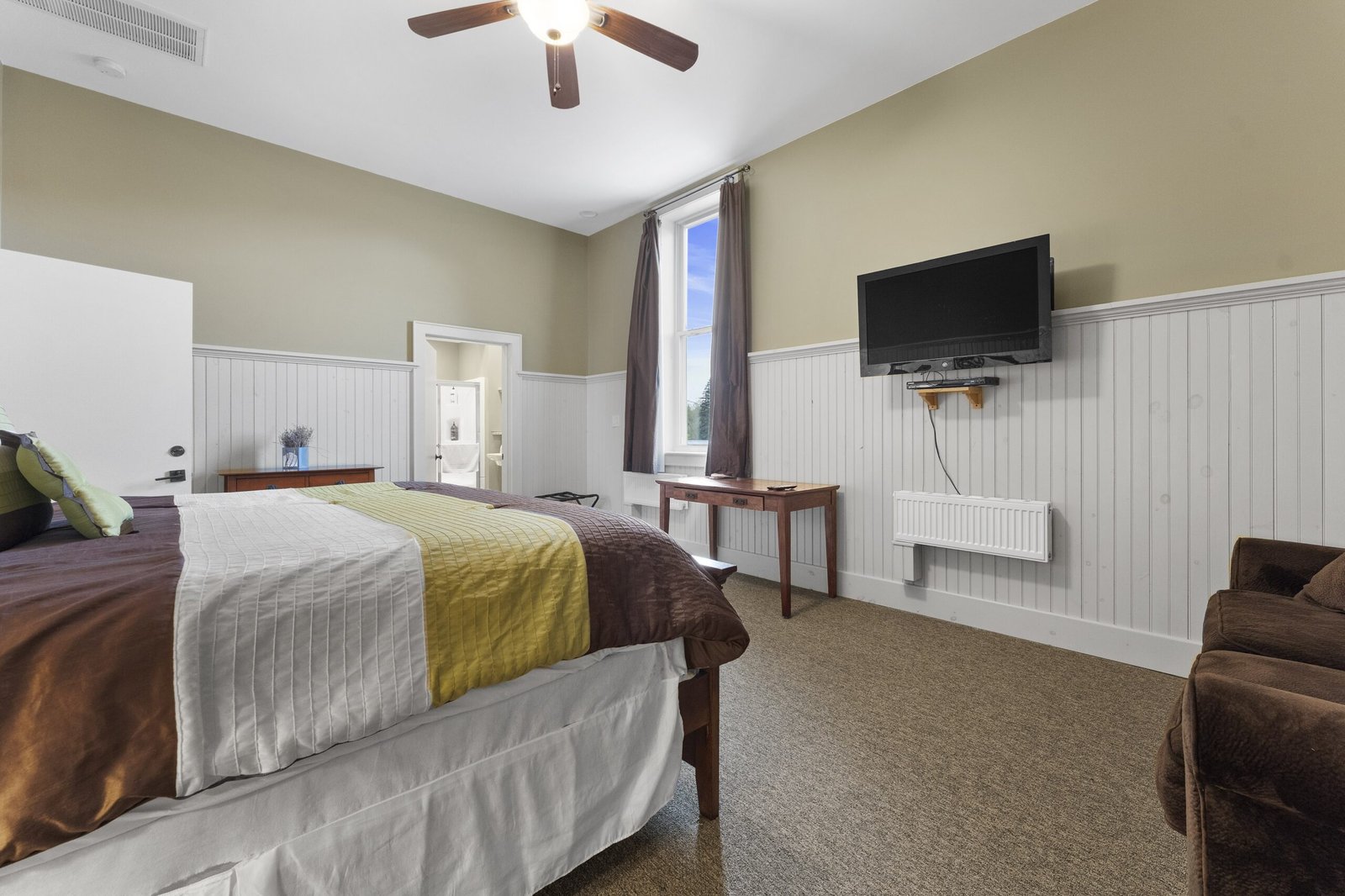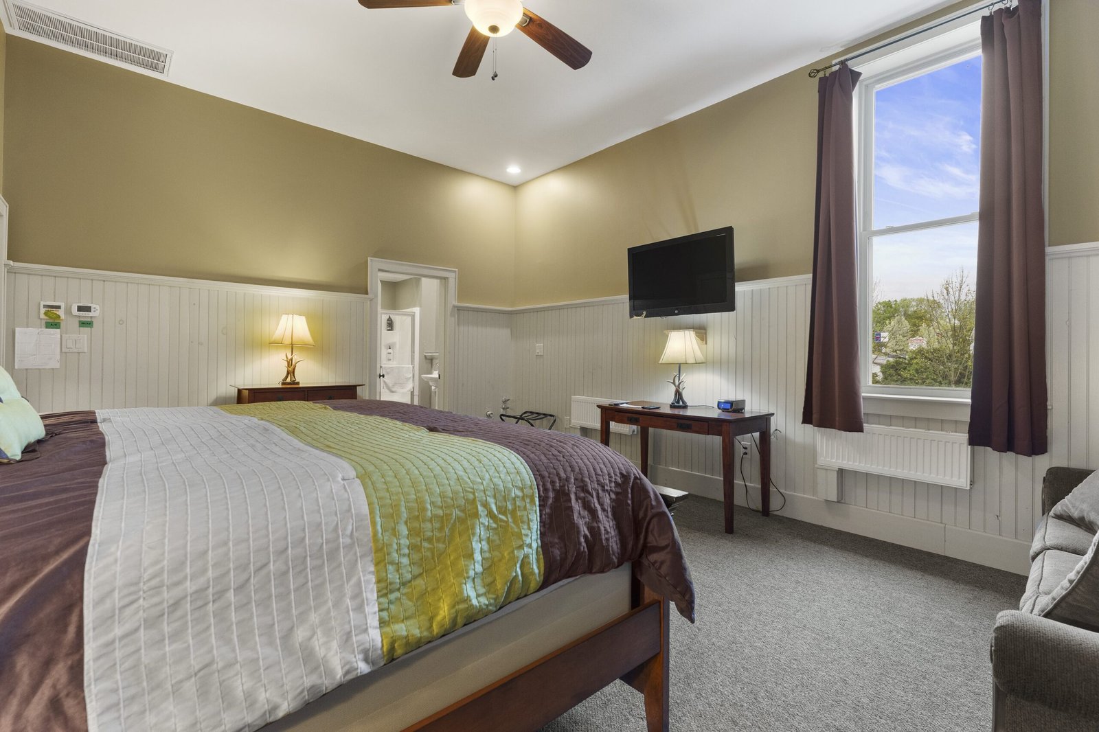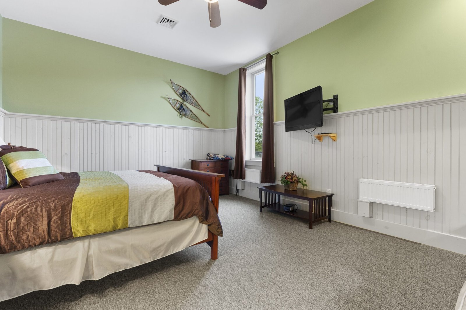 We have a nearby place we were planning to use for a ski trip to Gore, with extended family of 9 people. Due to last minute plumbing problems, we had to find other accommodations just a few days before the trip. The Loft at the Remington was available and fit our needs perfectly. The place is very attractive inside and the 4 huge bedrooms with private baths worked out great. The pricing worked out well for a group our size, and Steve was very friendly an accommodating, with all kinds of suggestions for out-of-towners. The apartment is more spacious than it looks in images and was quite clean and well-appointed with all the necessary amenities. The attractive décor even included historic images of the building (including one of particular interest to my father-in-law, who use to shop here as a boy 70+ years ago!). For those who have not been to the area, please note that Chestertown is very small. There are restaurants and groceries, but this location would primarily be a base for most people to explore the greater area. Also note that there are a lot of stairs to get into the unit, if that is a problem for anyone. We had a great stay, and will be recommending this to friends and family who need accommodations while in area.