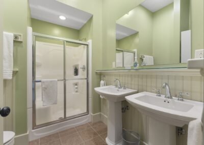 Each of our 4 king suite bedrooms have a pull oyt sofa and private bathroom with stand up shower and double sinks to give everyone privacy.